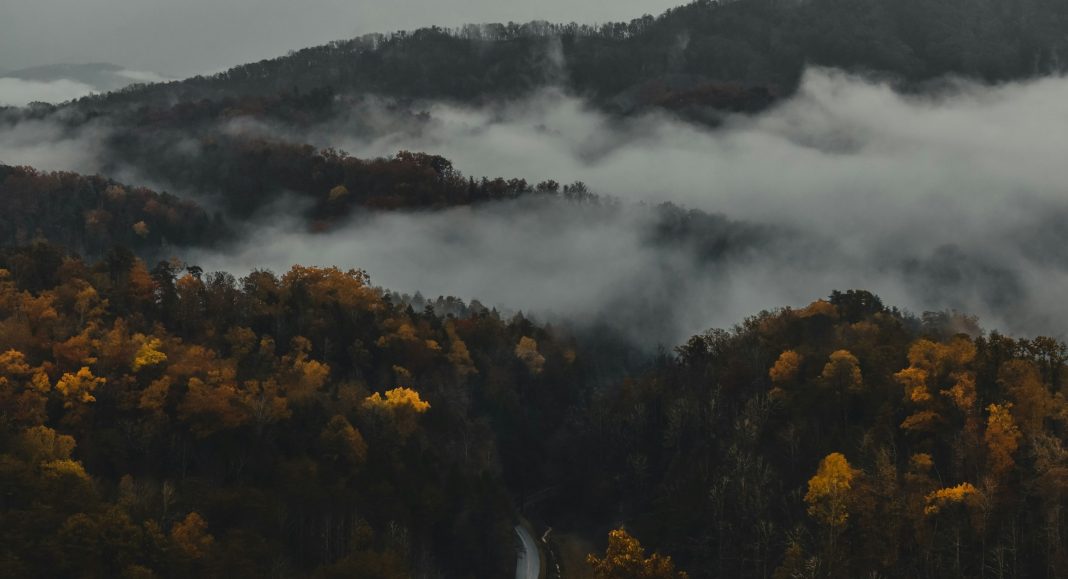 its leading edge past the creased August leaves at the last possible minute on the right,